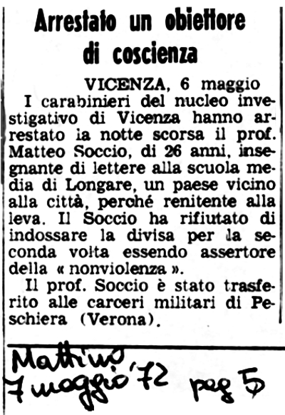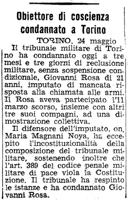 Articoli di giornali sull’obiezione di coscienza